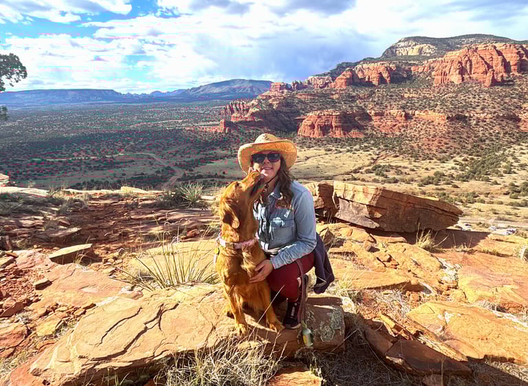 "Jeana and Mark are amazing. We are so happy we found them while visiting Sedona. Charli has been on hikes, walks, and swimming in the creek. Will certainly use again - they are the best!" -- Susan